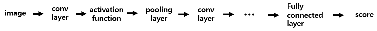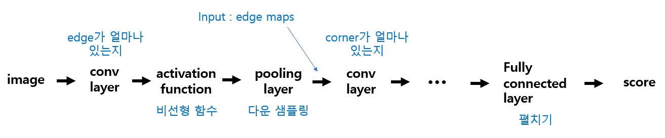 하지만 CNN에서는 score를 구하기 직전인 fully connected layer를 제외하고는 input의 형태를 보존합니다.