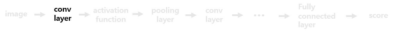 이미지보다 작은 사이즈의 필터(filter)가 일반 NN에서의 가중치(W) 역할을 수행하고, 필터는 슬라이딩을 하며 순차적으로 모든 값에 가중치를 곱하는데, 자세한 내용은 CNN의 구성요소가 되는 층(layer)들을 소개할때 설명하겠습니다.
