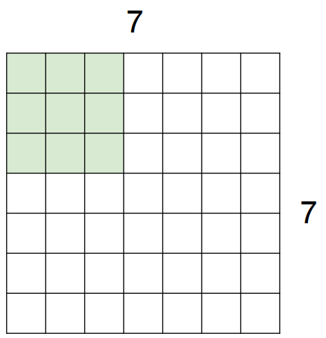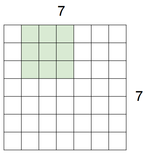 stride가 1이었던 예시의 경우에는 output 크기가 5*5 였는데, stride가 2인 예시에서는 output의 크기가 3*3 입니다.