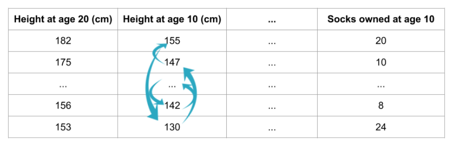 10살 때의 정보로 20살이 됐을때의 키를 예측하는 예시를 들어보겠습니다.