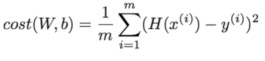 빨간 직선 : Cost (loss, error) = H(x) - y = 예측값 - 실제값