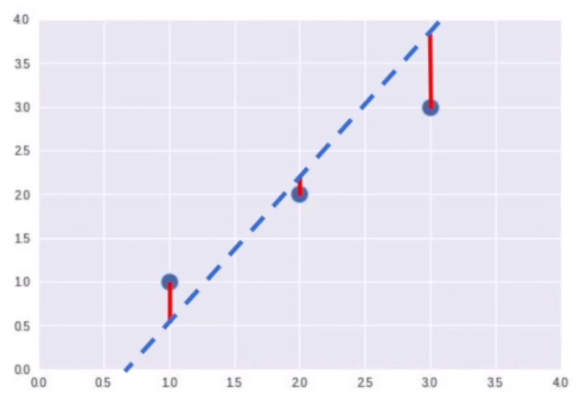 결론부터 말하자면 이번 예시에서 데이터를 가장 잘 대변하는 직선은 y = x 야.